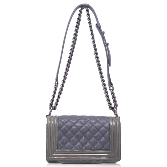Chanel Boy Grey and Patent Small