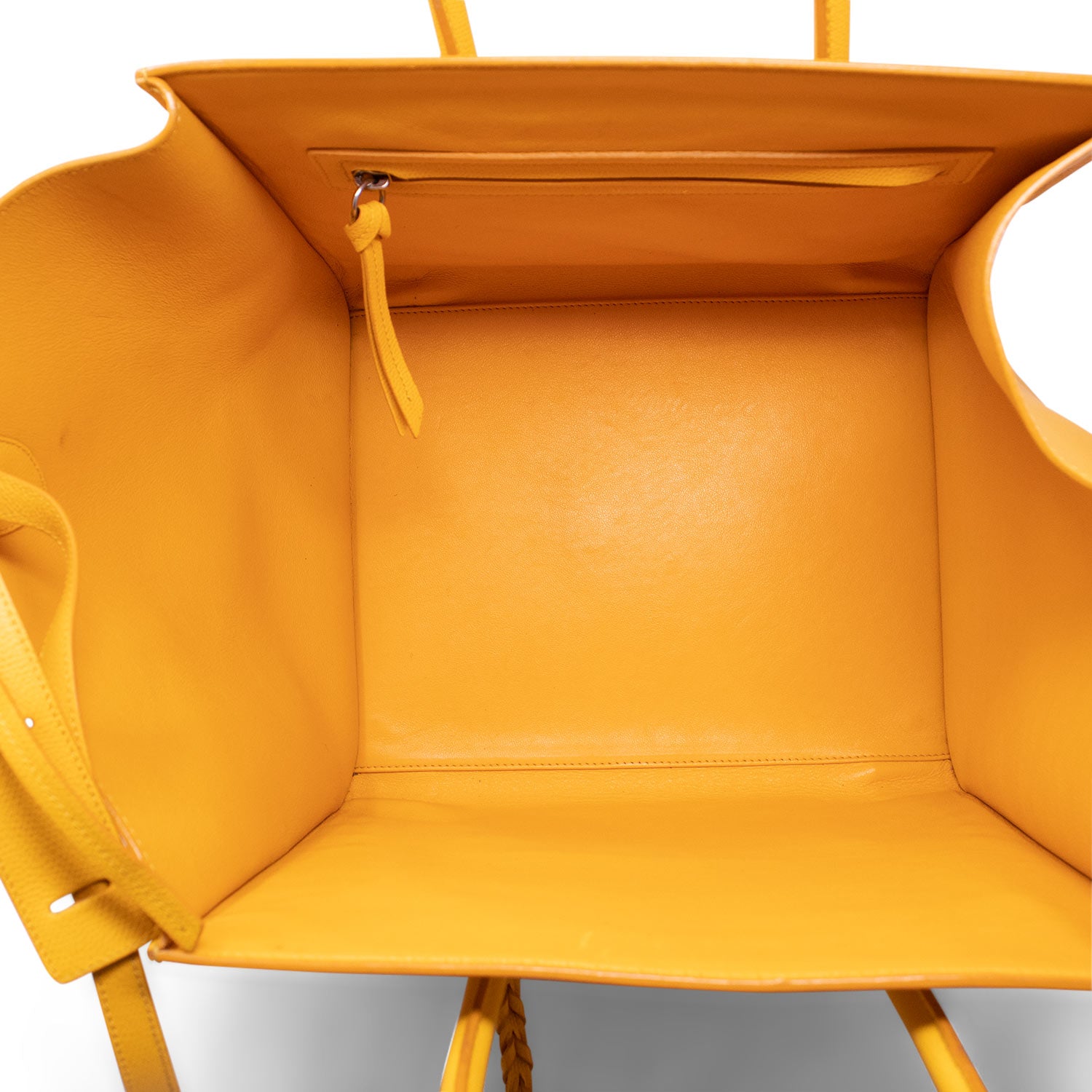 la parte superiore si apre su un ampio interno in pelle scamosciata