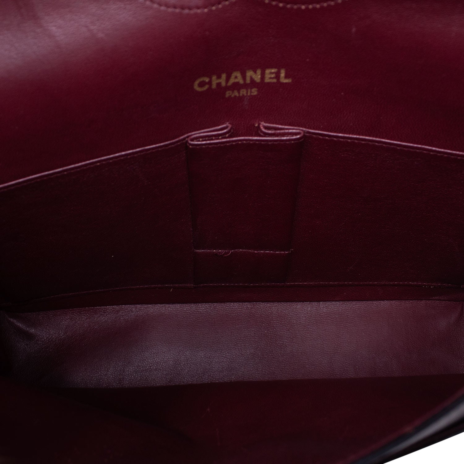 un interno in pelle bordeaux, si tratta di un must have Chanel.