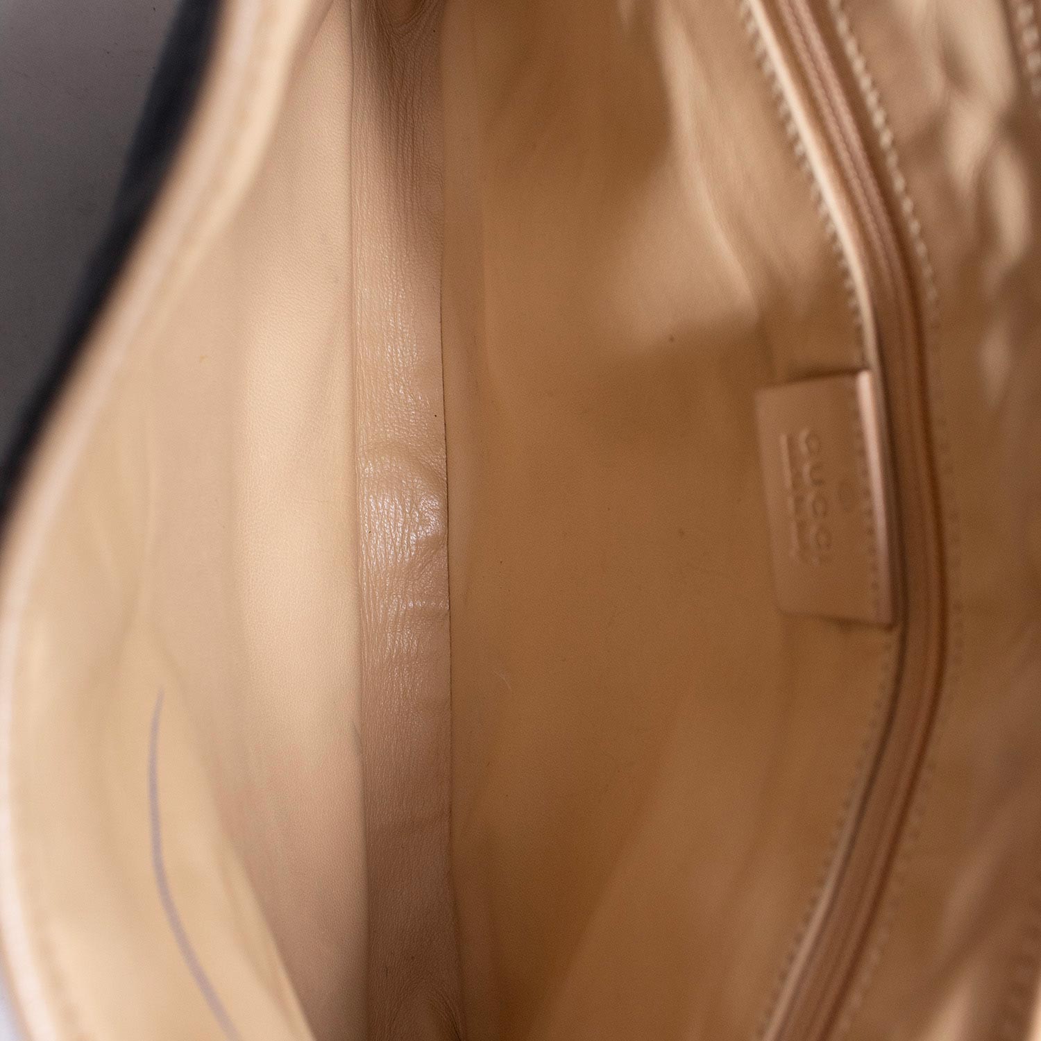 l’interno è foderato in pelle, con una tasca con cerniera.
